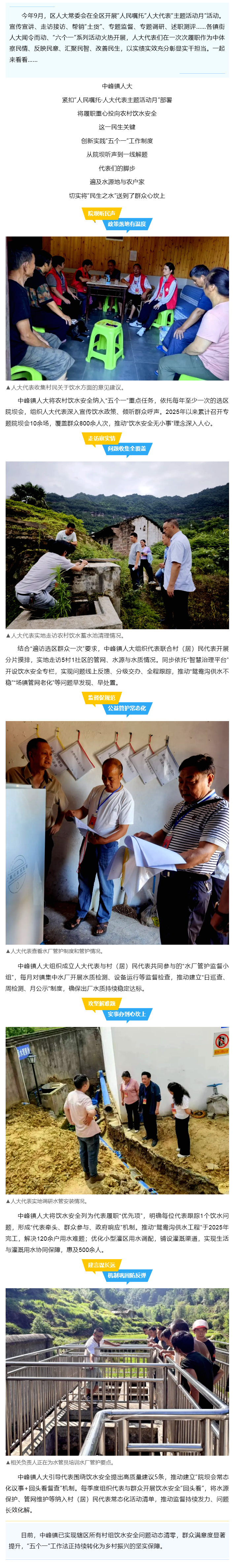 代表主题活动|中峰镇人大:“五个一”推动农村饮水安全 代表履职见实效