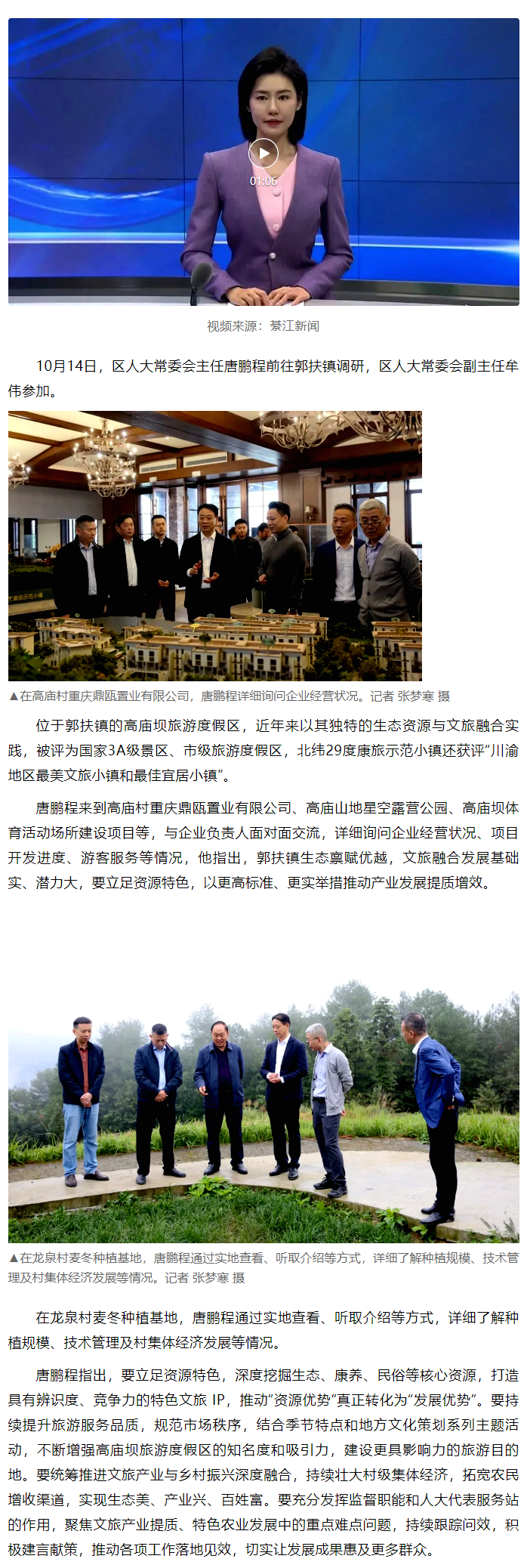 要闻 | “将资源优势转化为发展优势!” 唐鹏程深入郭扶镇为文旅融合与乡村振兴划重点