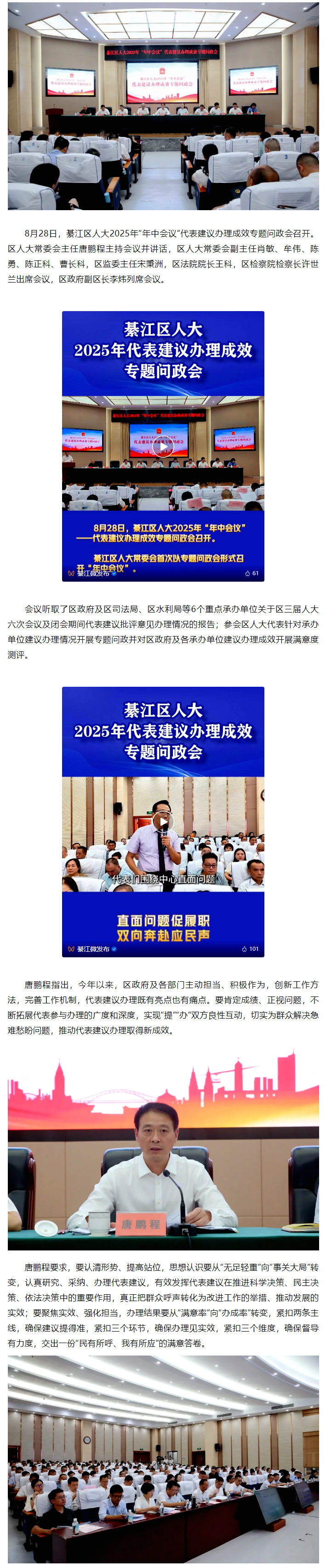 要闻 | 綦江区人大2025年“年中会议”代表建议办理成效专题问政会召开