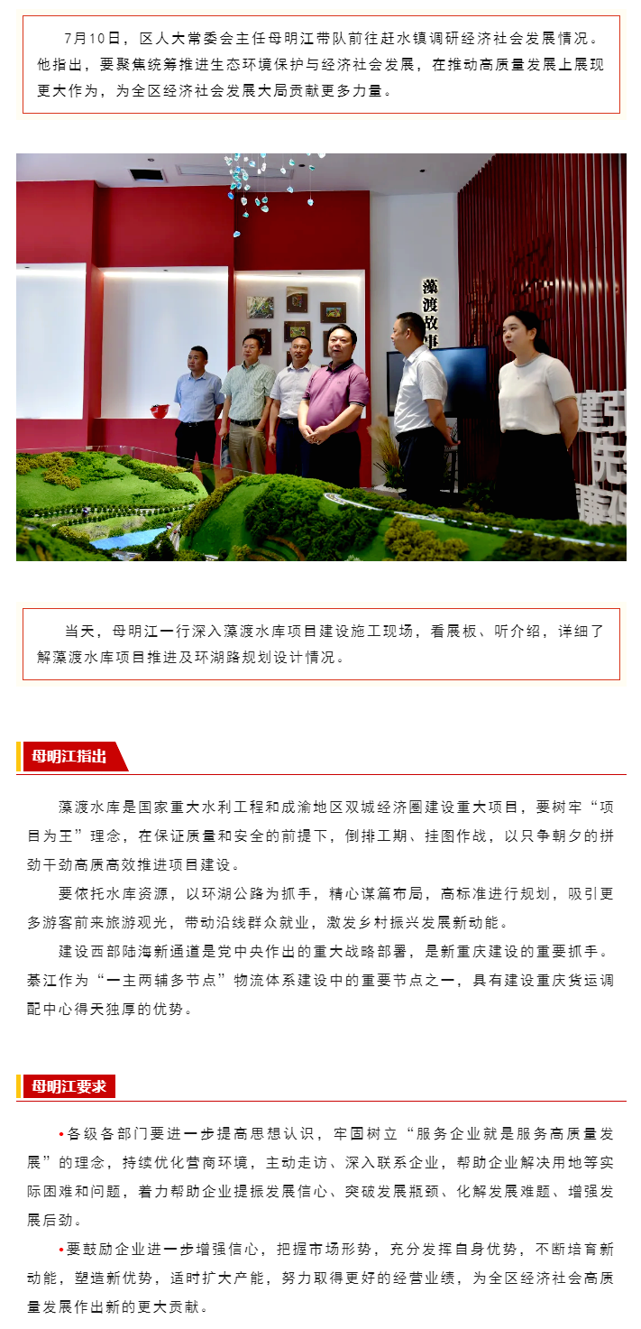 母明江在赶水镇调研时指出 要为全区经济社会发展大局贡献更多力量