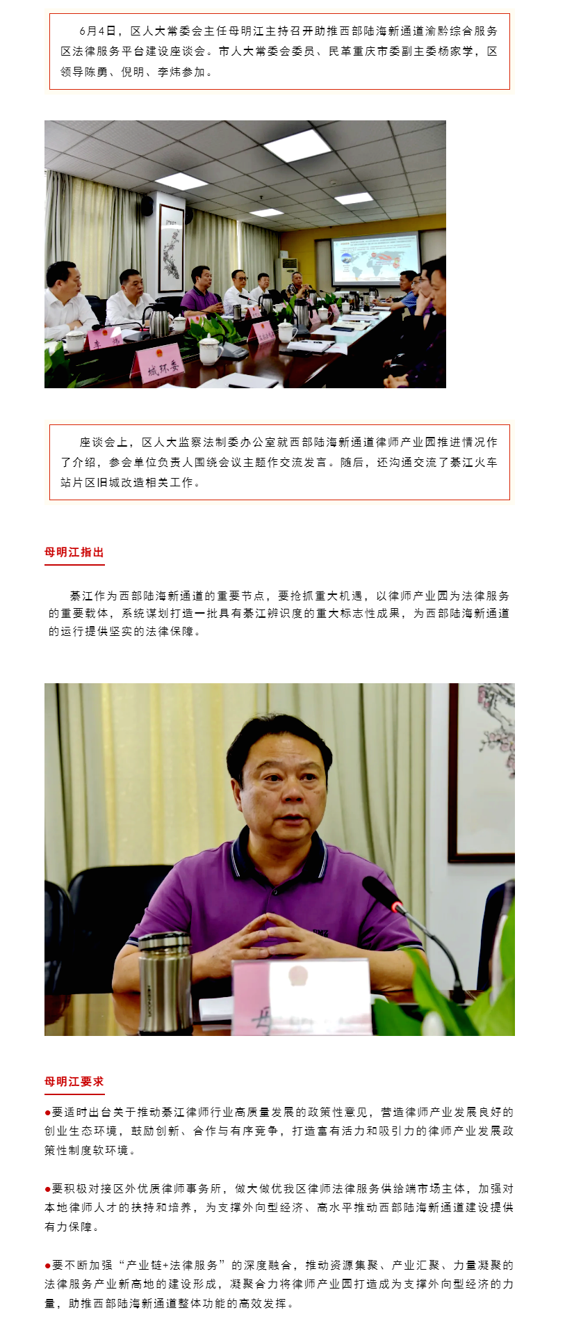 母明江主持召开座谈会 助推西部陆海新通道渝黔综合服务区法律服务平台建设