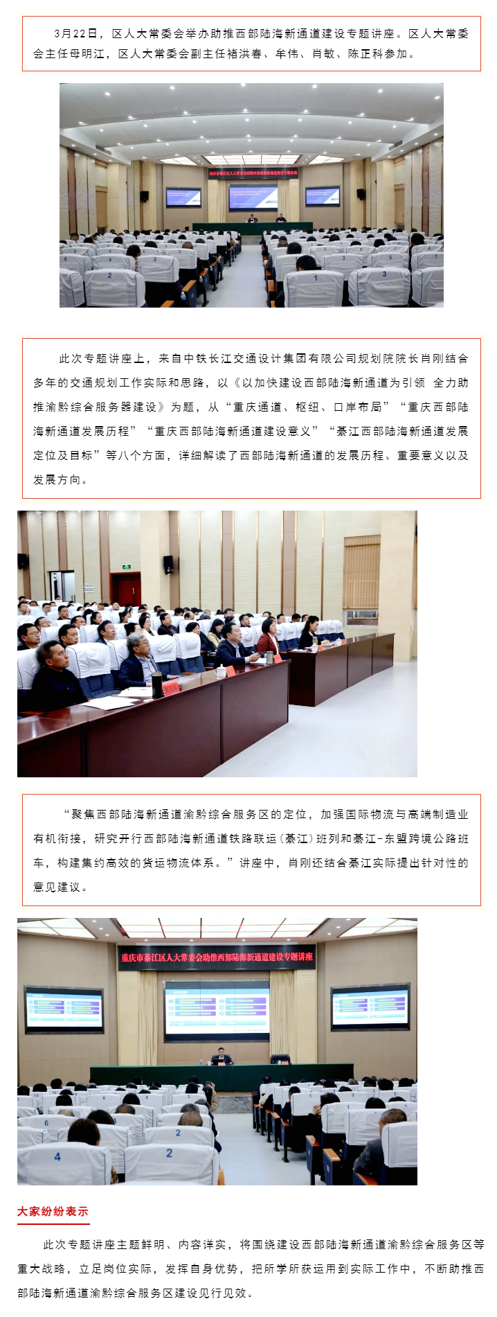 綦江区人大常委会举办助推西部陆海新通道建设专题讲座