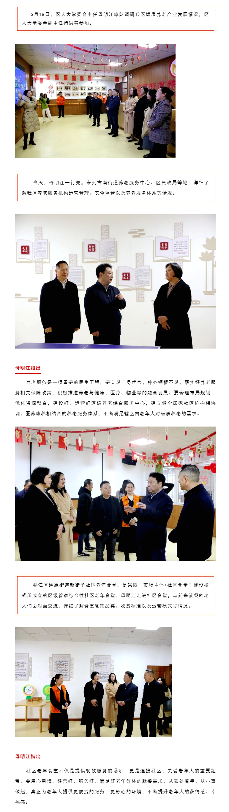 綦江区人大常委会主任母明江率队调研我区养老产业发展情况