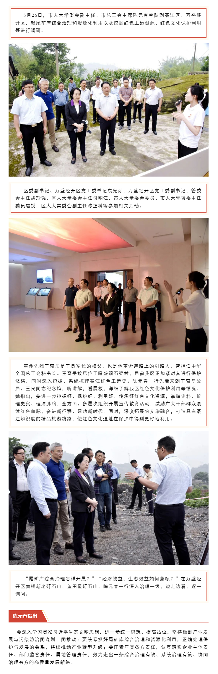 市人大常委会副主任陈元春一行来綦调研