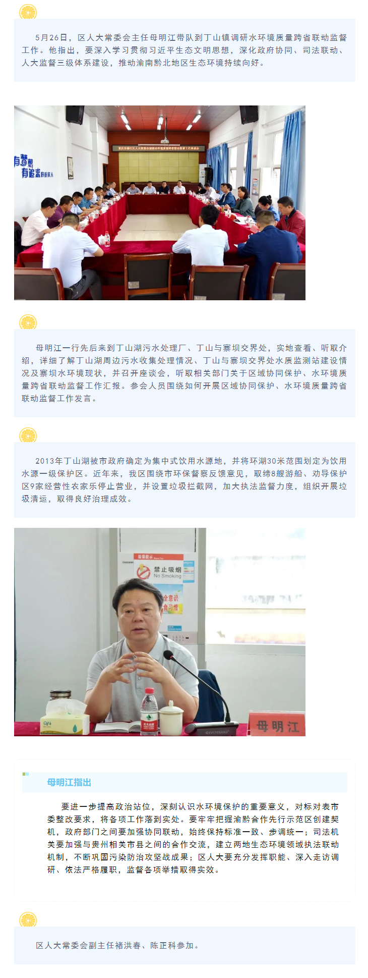 綦江区人大常委会主任母明江调研水环境质量跨省联动监督工作