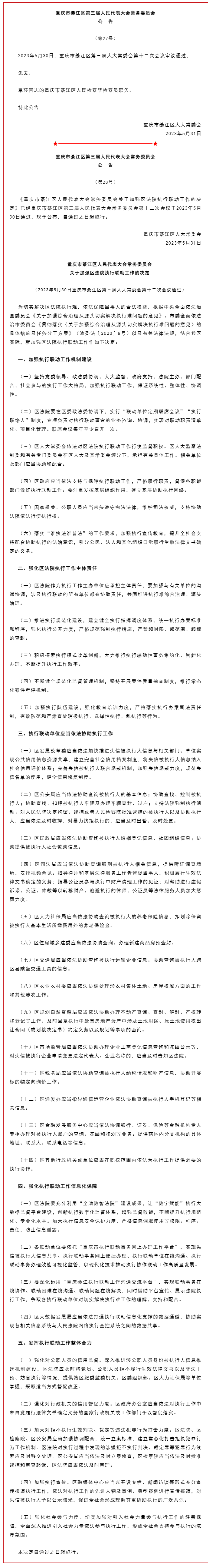 重庆市綦江区第三届人民代表大会常务委员会公告(第27-28号)