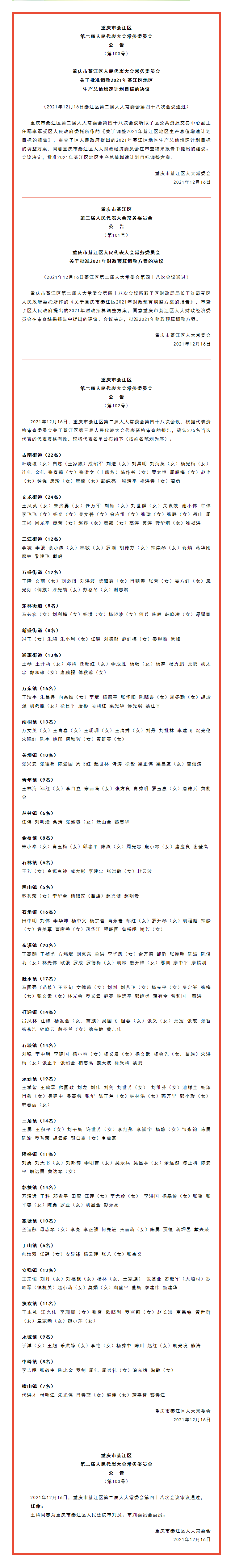 重庆市綦江区第二届人民代表大会常务委员会公告
