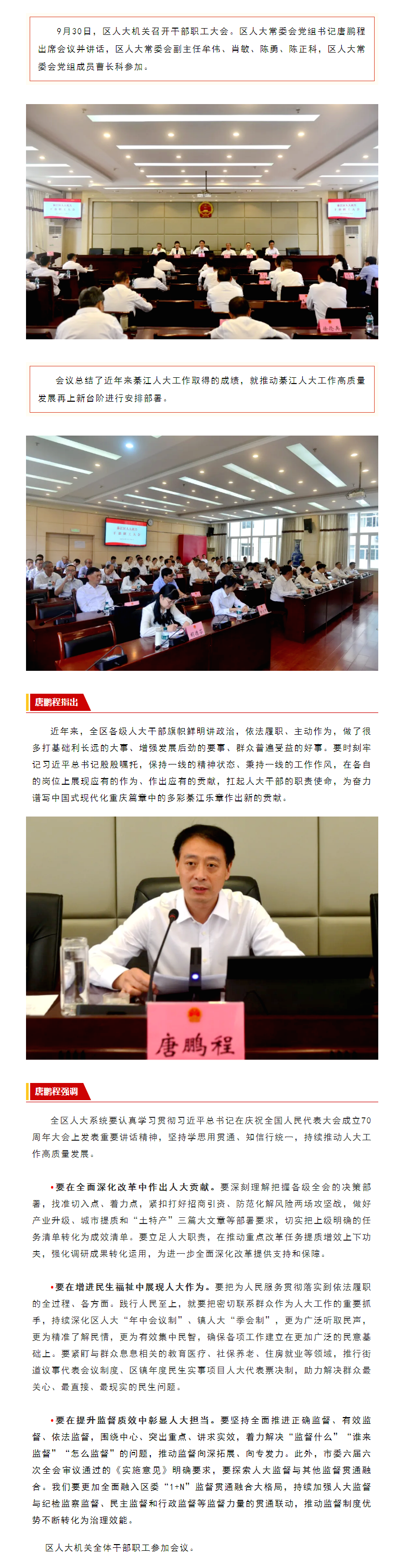 綦江区人大机关召开干部职工大会