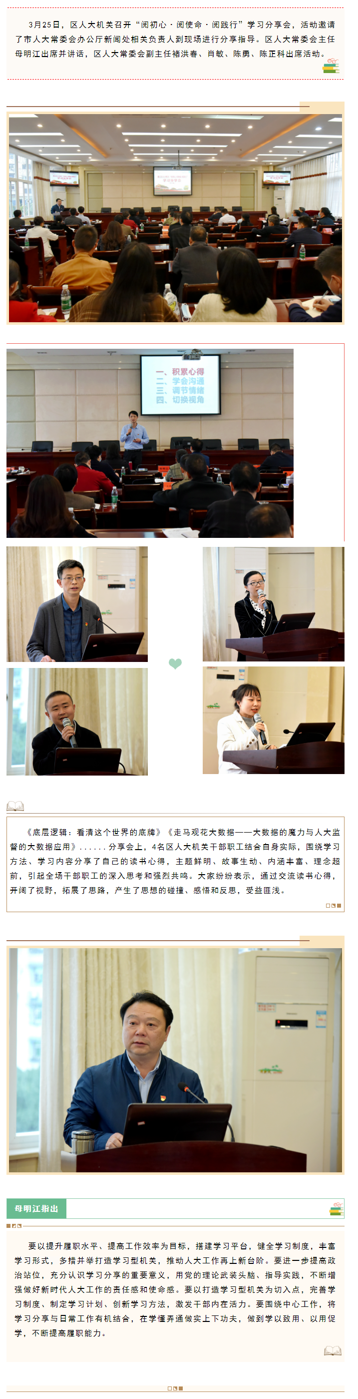 母明江在区人大机关学习分享会上指出 打造学习型机关 推动人大工作再上新台阶
